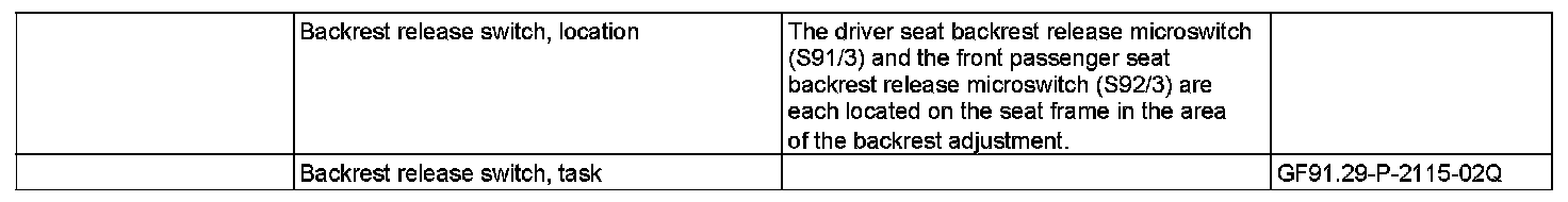 GF91.29-P-2115Q Backrest Release Switch, Location/Task