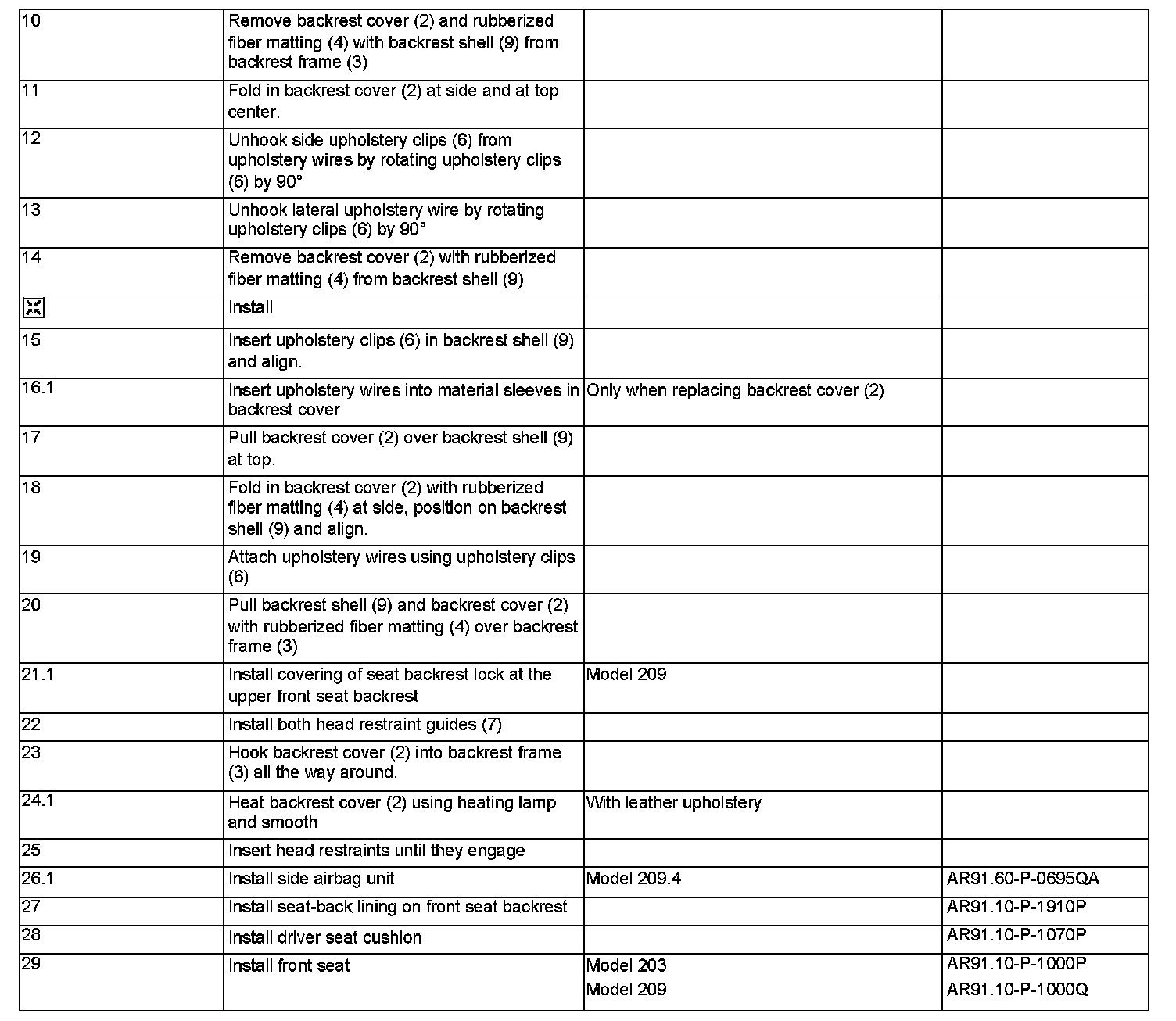 AR91.18-P-1820P Remove/Install Front Seat Backrest Cover