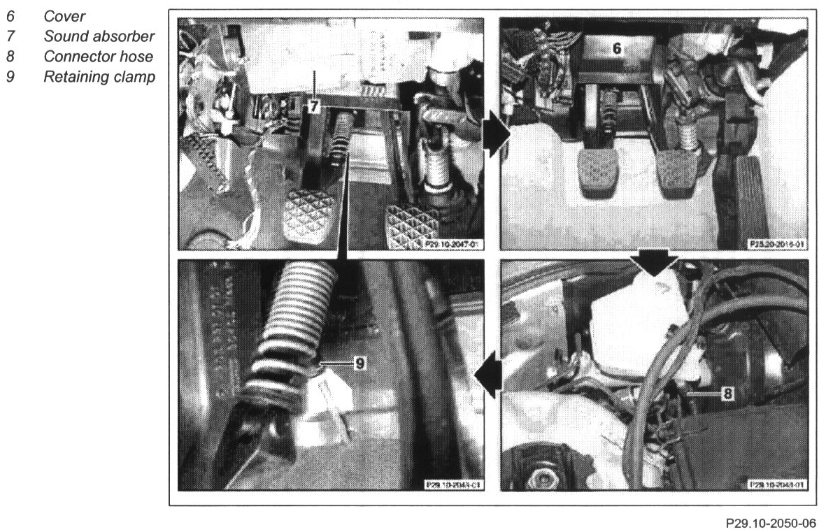 10 Pull out retaining clamp (9) at the connecting pipe of the master cylinder