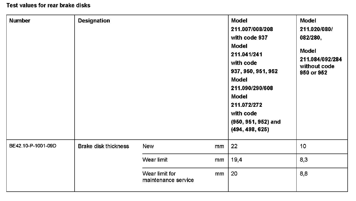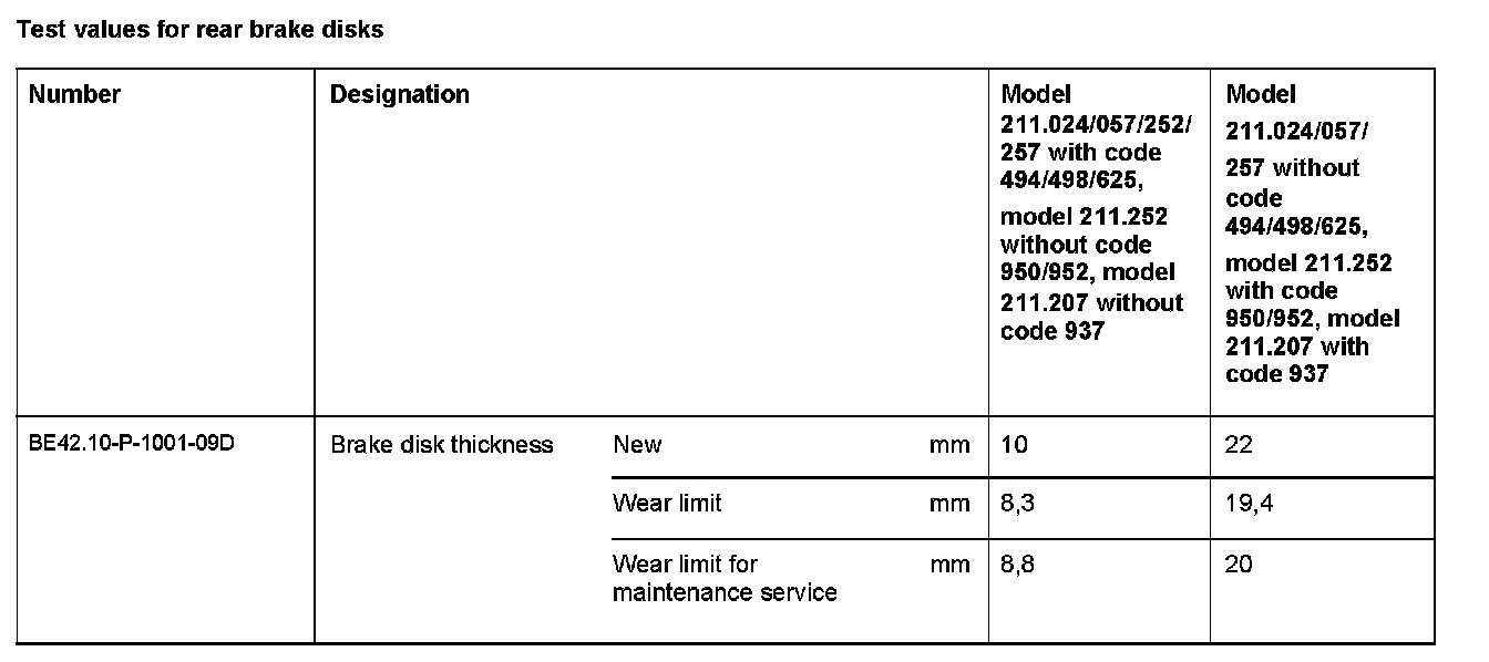 BE42.10-P-1000-09D Test values for rear brake disksModification Notes: