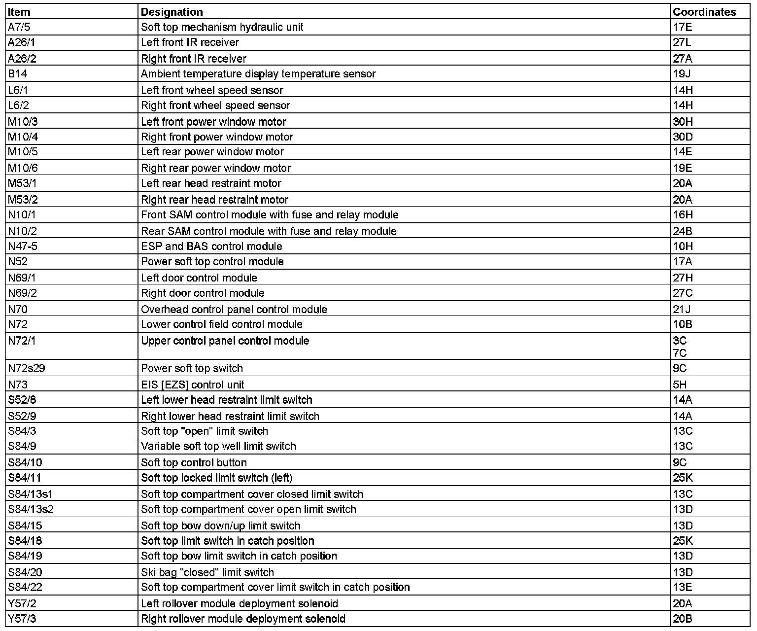 Function Diagram For Electrohydraulic Soft Top PE77.39-U-2052BA