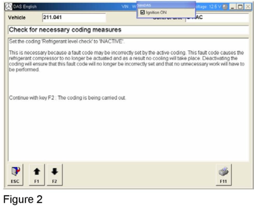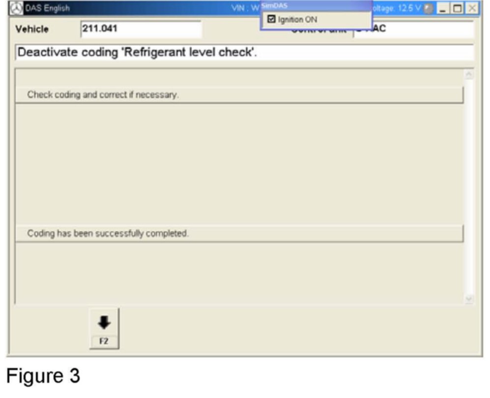Model 203: Control unit groups --> Body --> EZS - Electronic ignition switch --> Control unit adaptations --> Read coding and change if necessary --> Climate control --> Standard setting: Climate control --> Refrigerant level check --> Set to Inactive