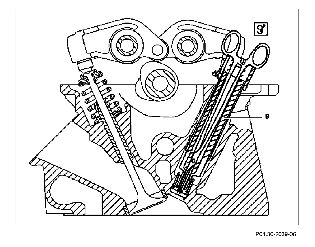 10. Insert sleeve (9) via primary pump drive of Heli-Coil(R) insert
