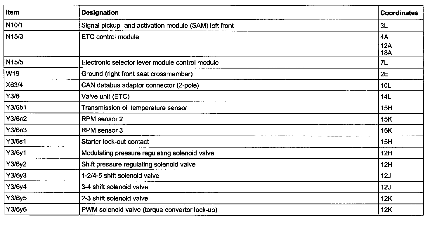 Component Description/Coordinates, N10/1 - Y3/6y6: