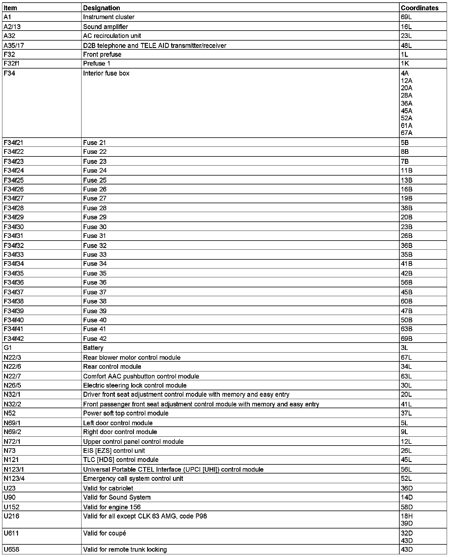 Component Description/Coordinates, A1 To U658: