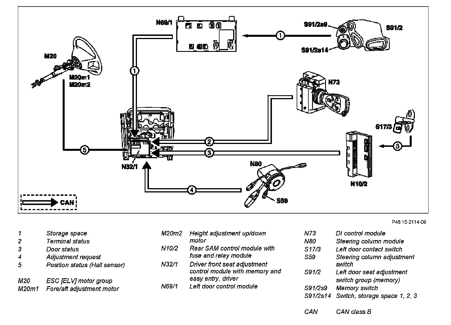 The positions of the steering column are stored in the front seat adjustment control module with memory and easy entry, driver (N32/1).