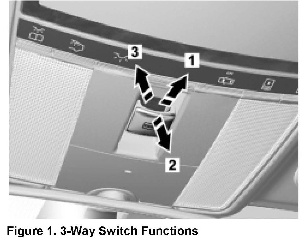 Sliding roof switches have become 3-way switches instead of 4-way. Sliding forwards has been discontinued. To close, pull switch as shown (Figure 1). Inform the customer if replacing a 4-way with the new 3-way switch.