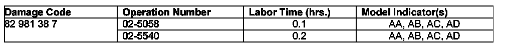- The following allowable labor operation should be used when submitting a warranty claim for this repair: