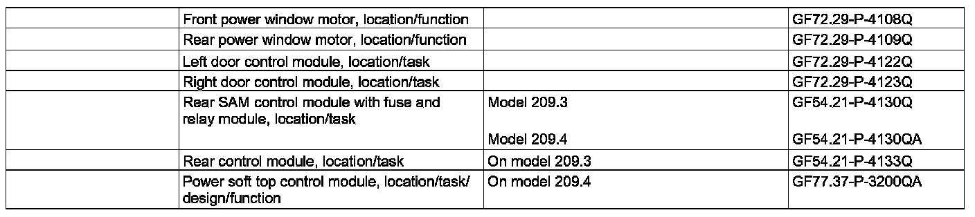 ^ power soft top control module (N52) (on model 209.4) taken from the CAN class B bus, processed, and the requested short stroke position implemented by the power window motors (M10/3, M10/4, M10/5 and M10/6).