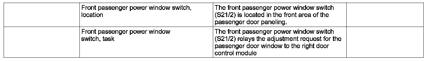 GF72.29-P-4119Q Front Passenger Power Window Switch, Location/Task