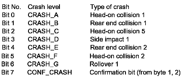 The emergency call system control unit (N123/4) receives the following messages via a direct digital crash signal from the restraint systems control unit (N2/7), and also (redundantly) via controller area network (databus/CAN bus) (CAN) diagnosis from the EIS control unit (N73). The EIS control unit (N73) receives the message via Controller Area Network bus class B (interior) (CAN-B) from the restraint systems control unit (N2/7):