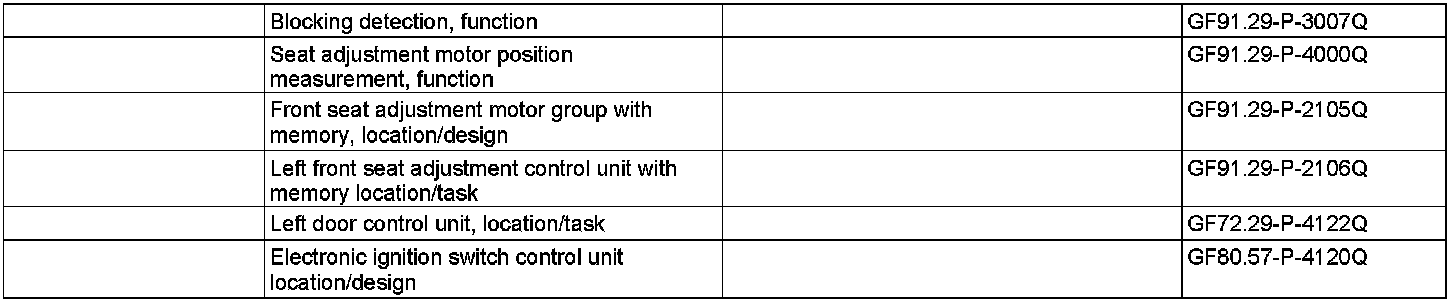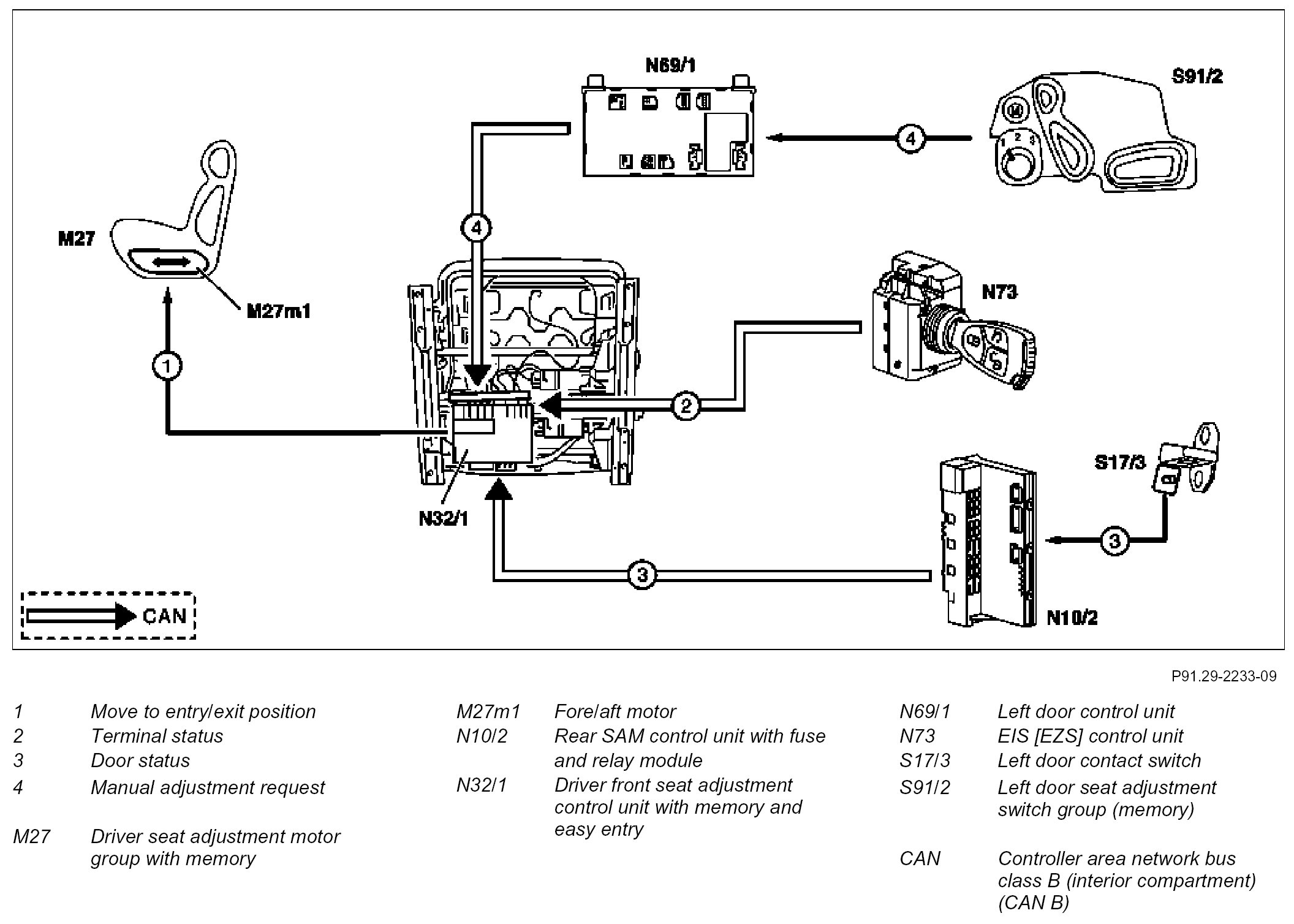 For this purpose, the following information from the driver front seat adjustment control unit with memory and easy entry (N32/1) is read in and processed via CAN-B (CAN):