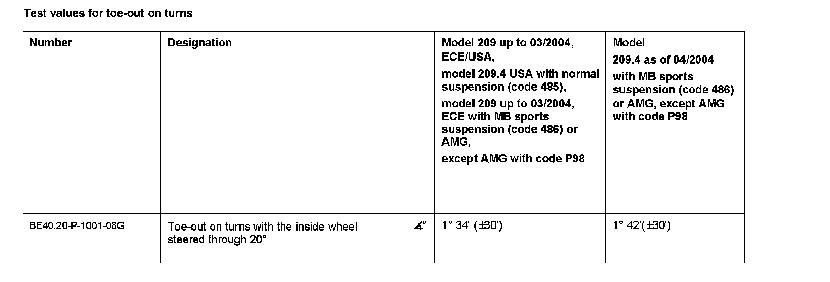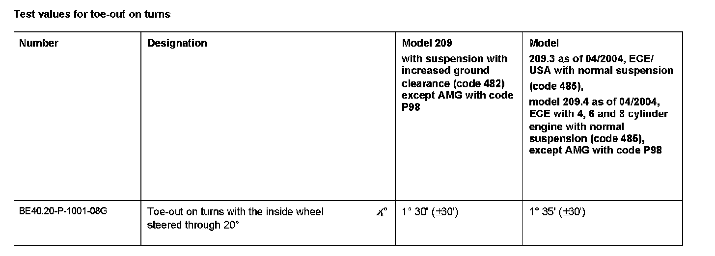Test values for toe-out on turns: