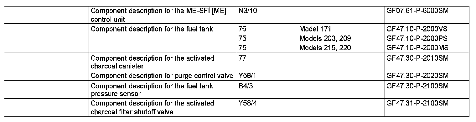 If the ME control unit (N3/10) detects a system with a substantial major leak, the fuel reserve warning lamp (A1e4) in the instrument cluster (A1) flashes and "CHECK FILLER CAP" appears in the multifunction display (A1p13).