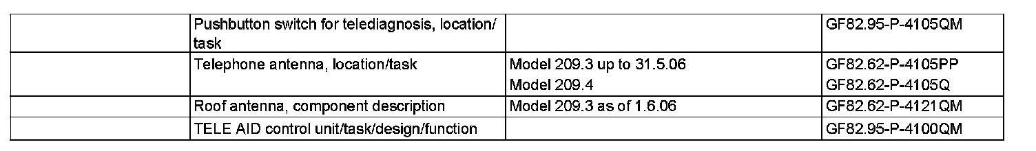 The telediagnosis service allows the user to get in contact with the service center, such as in the event of a problem with the vehicle. The service center can then use additional vehicle-specific data to make a remote diagnosis of the situation, and based on its findings, initiate appropriate assistance measures. The MB-Info and breakdown assistance button group (S93/6) is used to automatically send an SMS to the service center.