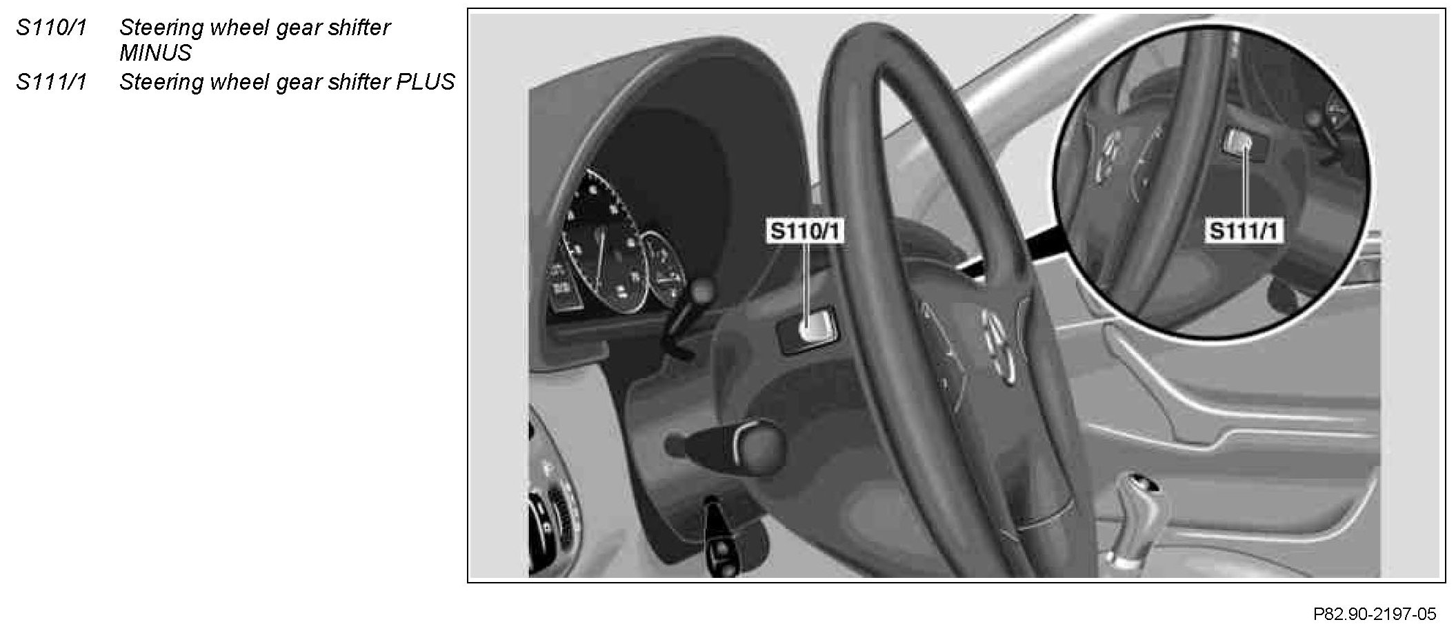 Steering wheel gear shifter MINUS (S110/1) and steering wheel gear shifter PLUS (S111/1)