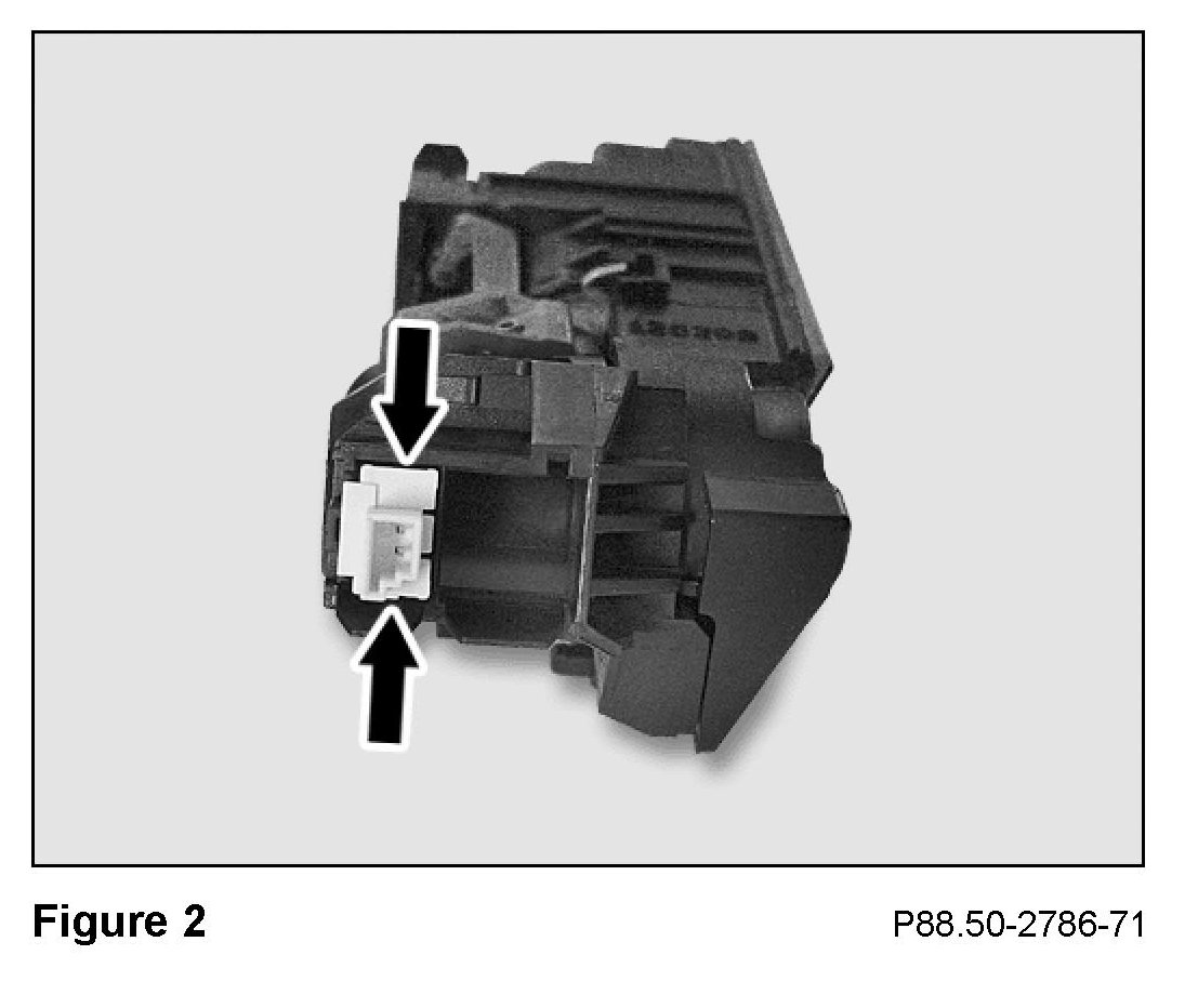 2. Insert the microswitch (Figure 2) for the trunk lid lock into the cavity in the side of the housing.