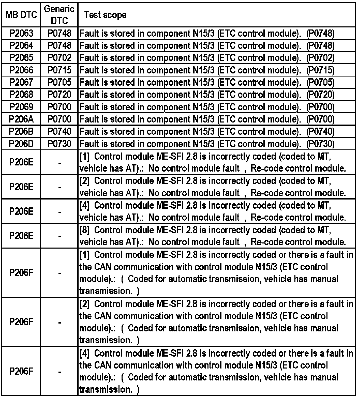 MB DTC P2063 - P206F: