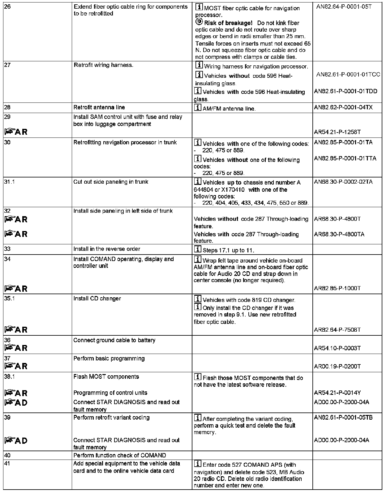 To perform step 24, check whether the fiber optic cable connector (MOST) (X39/50) is installed.