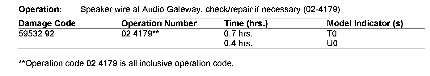 The following allowable labor operations should be used when submitting a warranty claim for this repair.