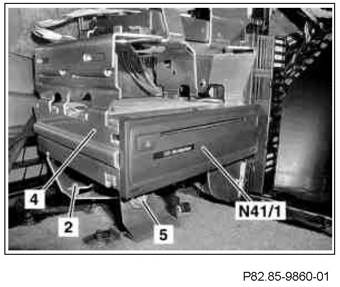 5 Push control unit bracket (4) with navigation processor (N41/1) into guide for bracket (2) as far as the stop.
