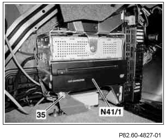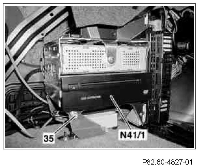 1 Remove screw (35) and swivel navigation processor (N41/1) in bracket to one side until the connectors are accessible.