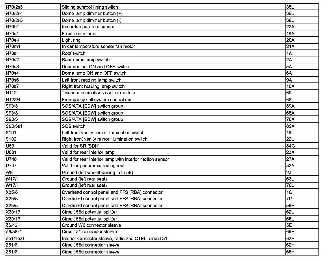 Component Description/Coordinates, N70/2s3 To Z81/6:
