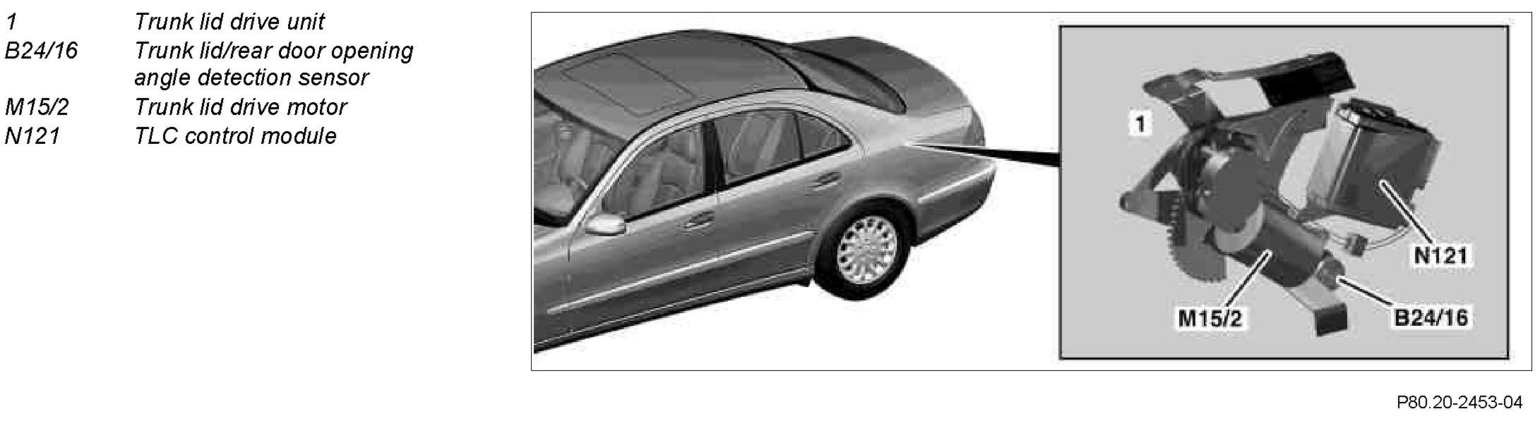 GF80.20-P-4121T Trunk Lid Drive Unit, Location/Purpose/Design/Function
