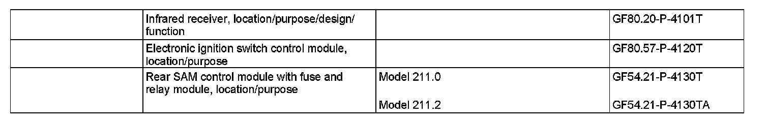 The radio remote signal is received by the rear window antenna (model 211.0) or the antenna in the left rear side window (model 211.2) The receiver in the left antenna amplifier module (A2/64) converts the radio signal into data signals These are evaluated by the rear SAM control module with fuse and relay module (N10/2) and stored on the passenger compartment CAN bus. The infrared signal is received by the left front IR receiver (A26/1) in the door handle and relayed by the left front door control module (N69/1).