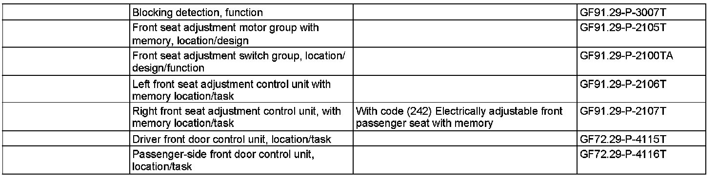 - with CODE (242) Electrically adjustable front passenger seat with memory
