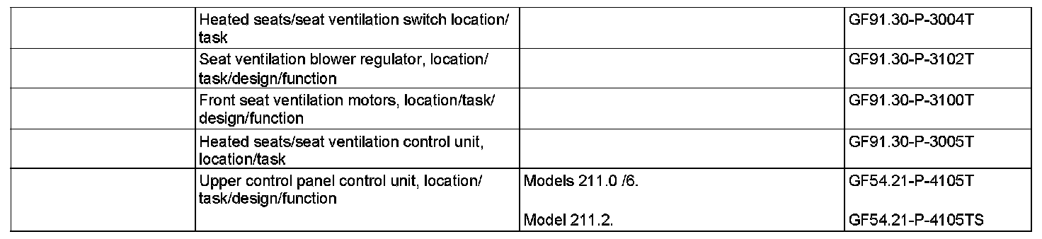 Operation and function indicators of the seat ventilation are summarized in the table given below.