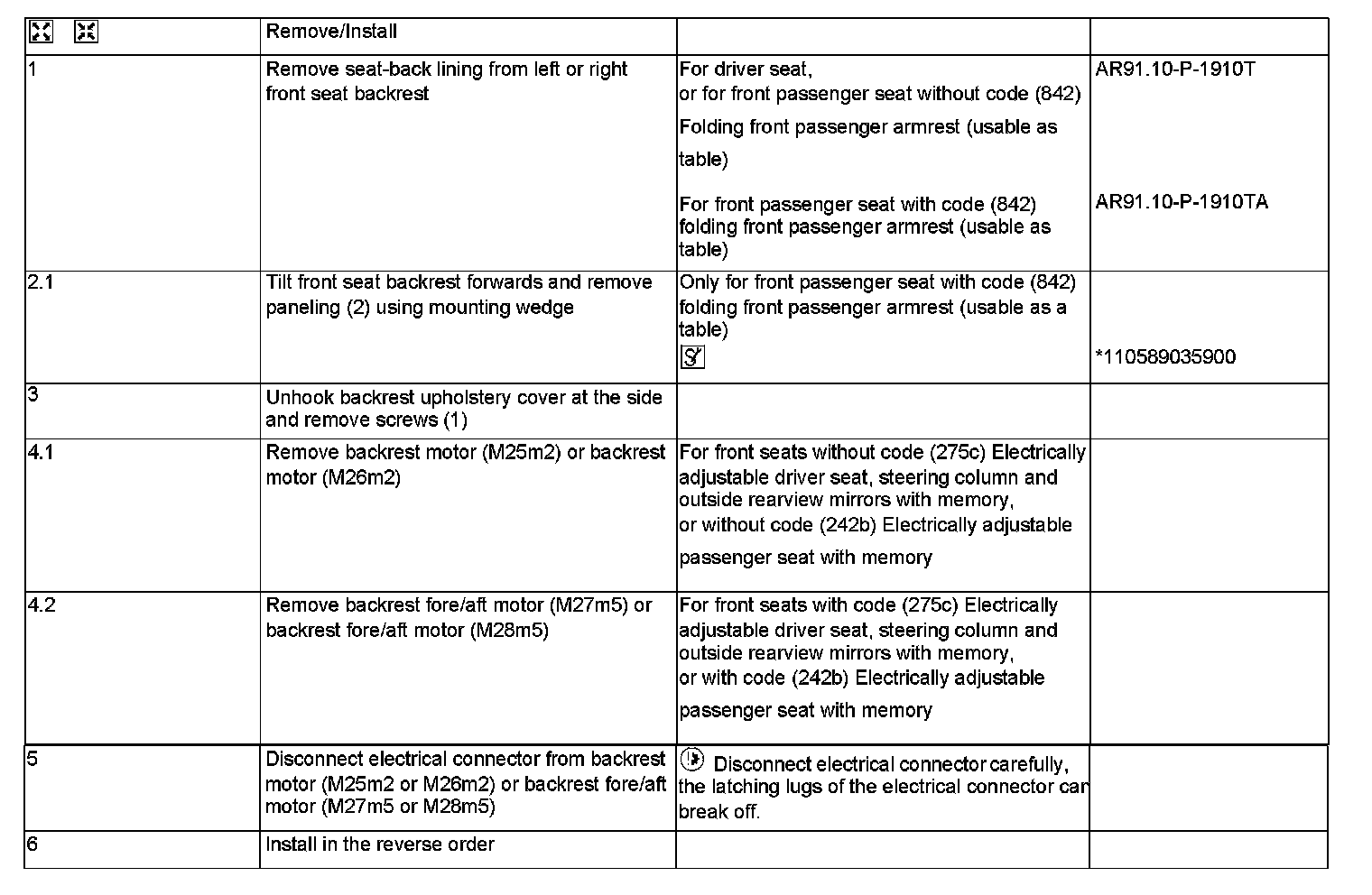 AR91.29-P-1431T Remove/Install Backrest Motor For Front Seat