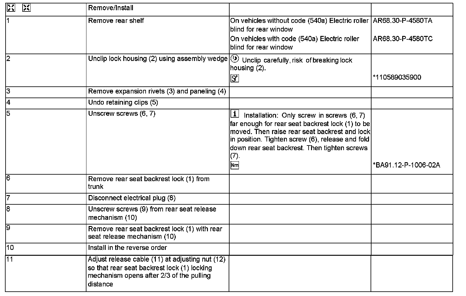 AR91.12-P-1730T Remove/Install Locking Mechanism For Folding Rear Seat Backrest