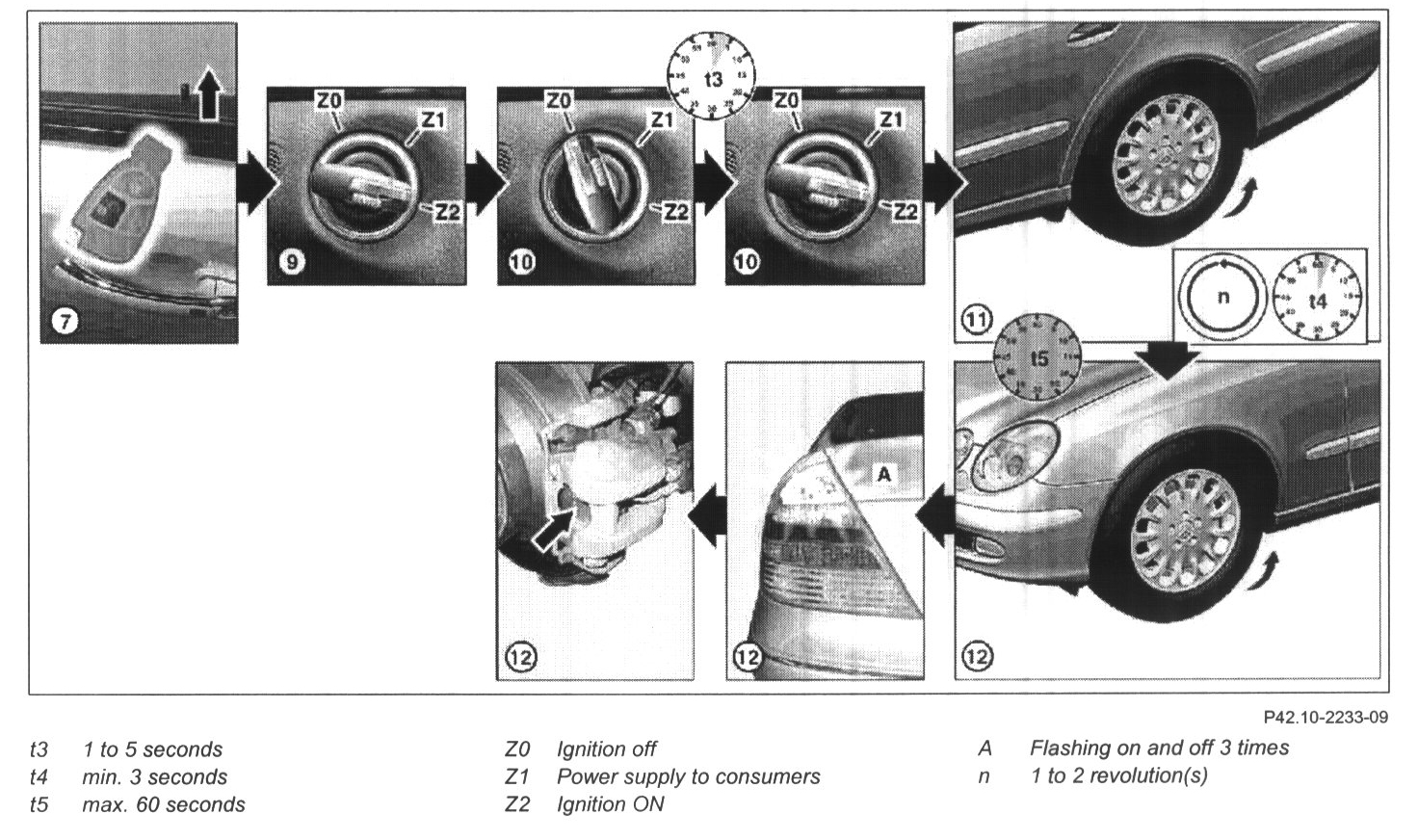 10 Ignition Off (Z0), wait for 1 to 5 seconds t2 and switch ignition On again (Z2)