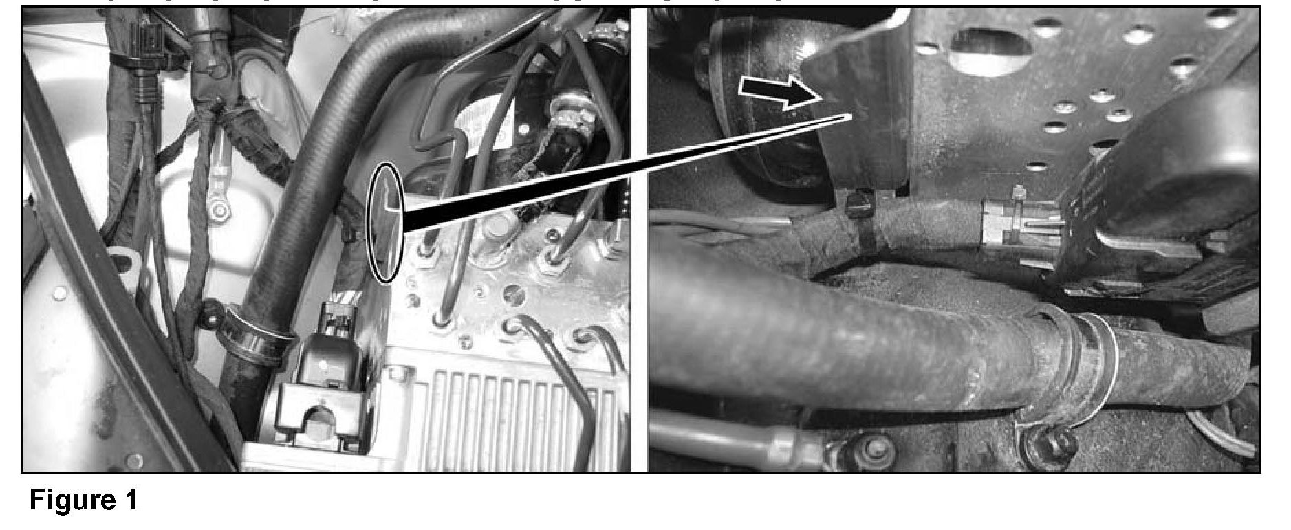 1. Open hood.2. Check if bracket (arrow, Figure 1) is installed on the SBC hydraulic unit: