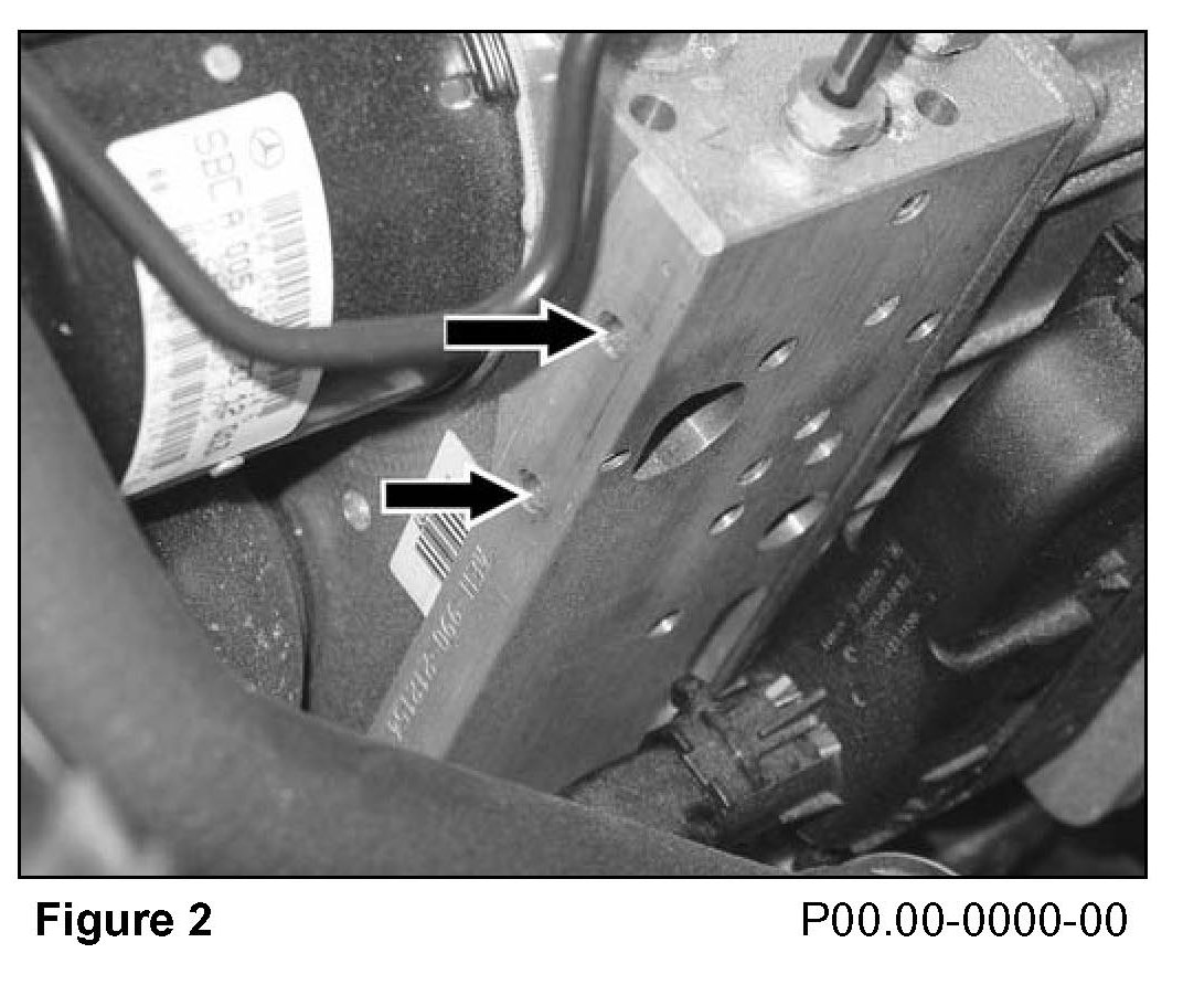 3. Check for bracket mounting bores (arrows Figure 2) in the SBC hydraulic unit: