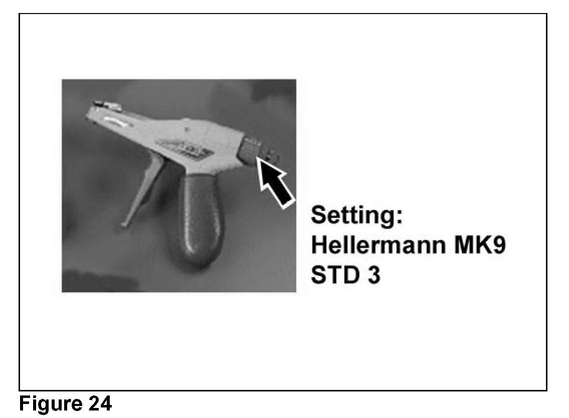 ^ Ensure cable tie (arrow, Figure 23) was properly affixed using cable tie pliers (Hellermann MK9; special tool number W 352 589 02 37 00)); use setting 3 on cable tie pliers, as shown in Figure 24.