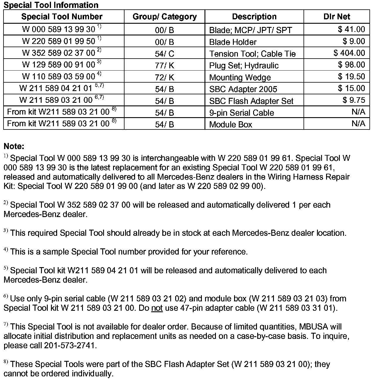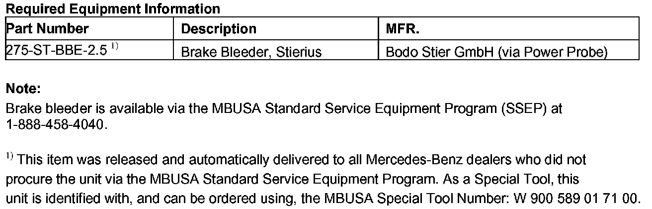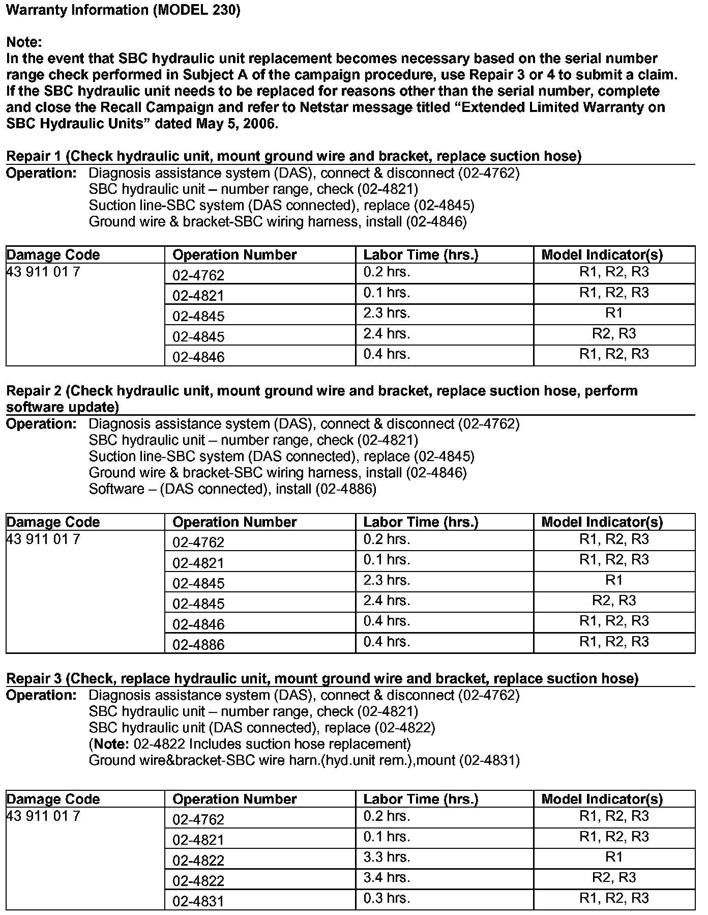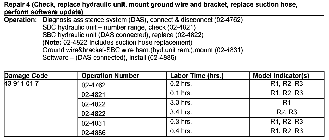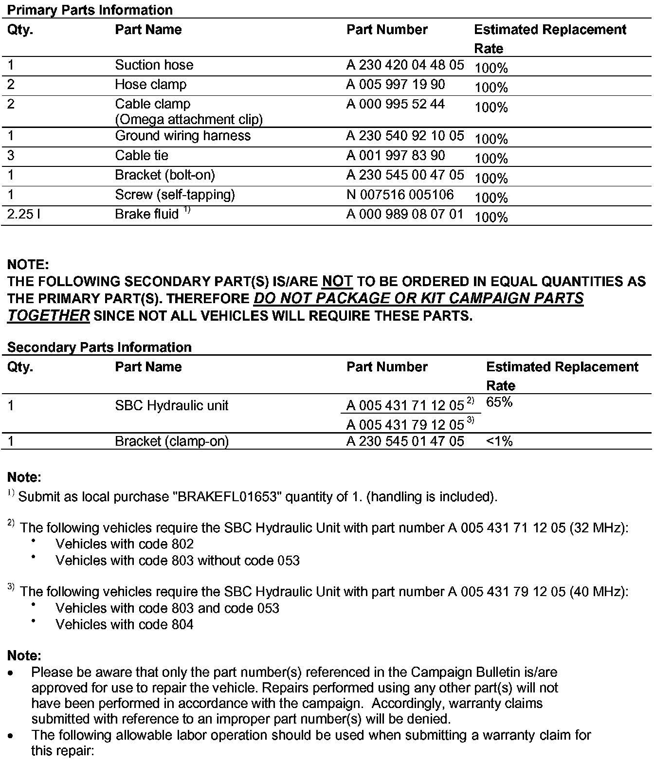 Reimbursement is limited to the amount the repair of the SBC hydraulic Unit, suction hose, ground wire and bracket, and related parts associated to these replacements (ex. screws, clamps, brake fluid) would have cost if completed by an authorized Mercedes-Benz dealer under this campaign.
