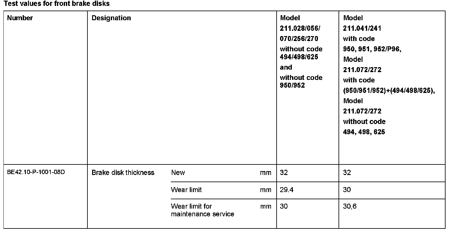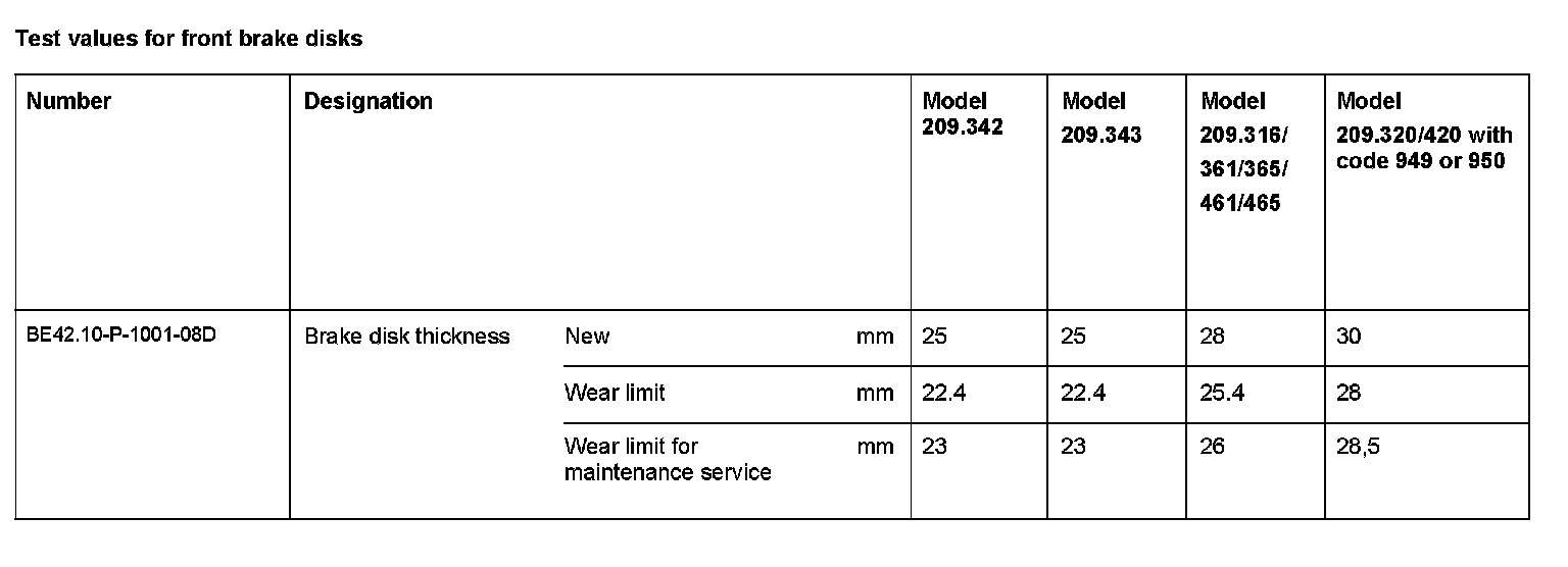 BE42.10-P-1000-08D Test values for front brake disksModification Notes: