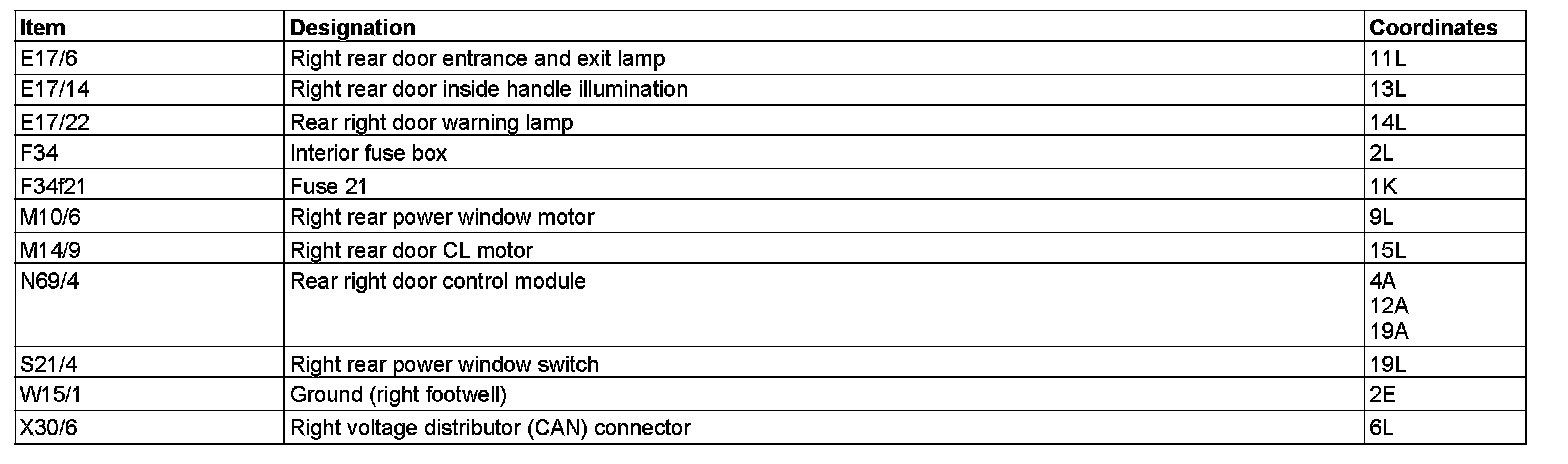 Wiring Diagram Door Control Module (DCM) Rear Right PE72.29-U-2104DA