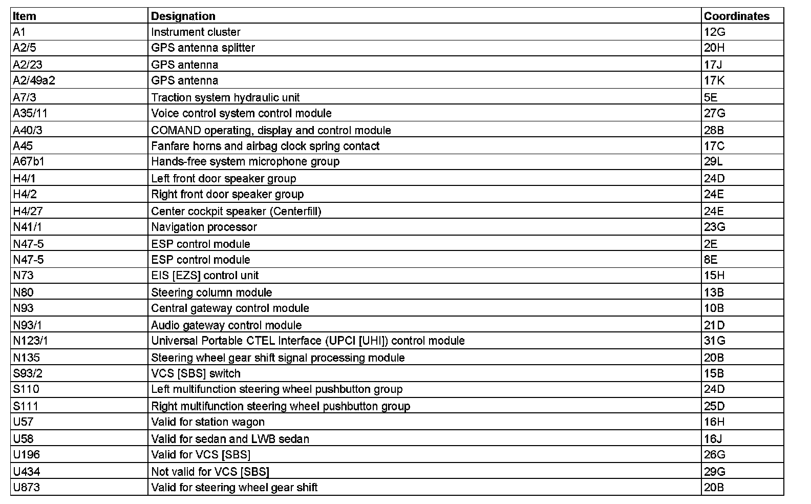Component Description/Coordinates, A1 To U873: