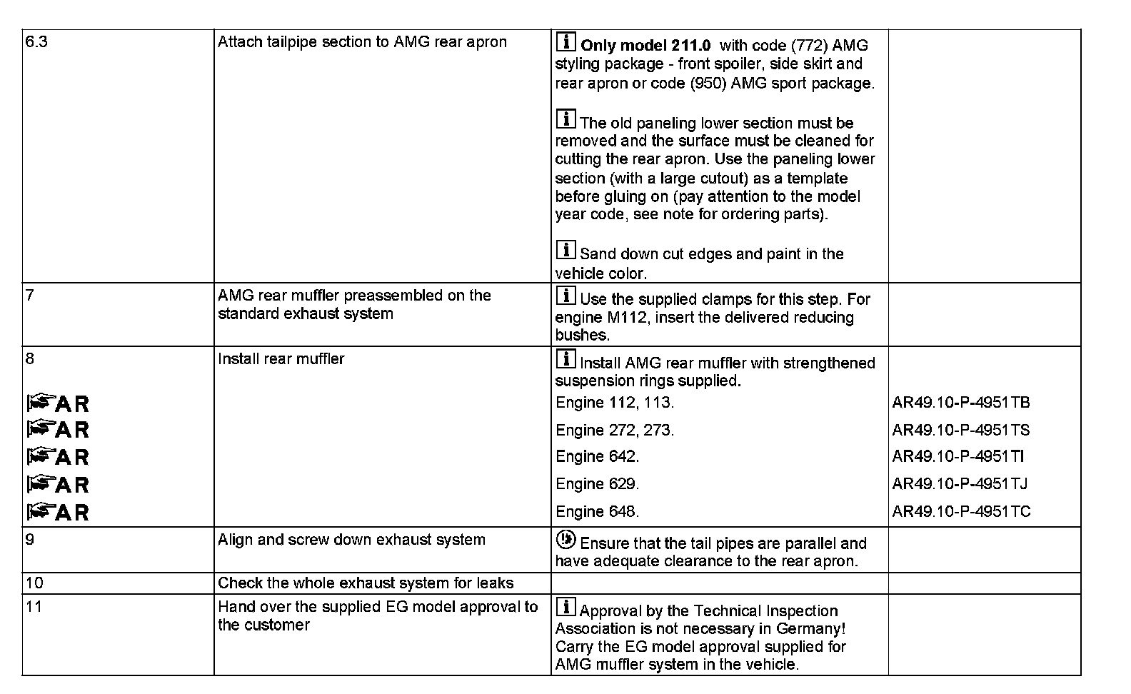 (1) and right (2) do no longer exist. They are replaced by the supplied, reinforced exhaust rubber mounts.