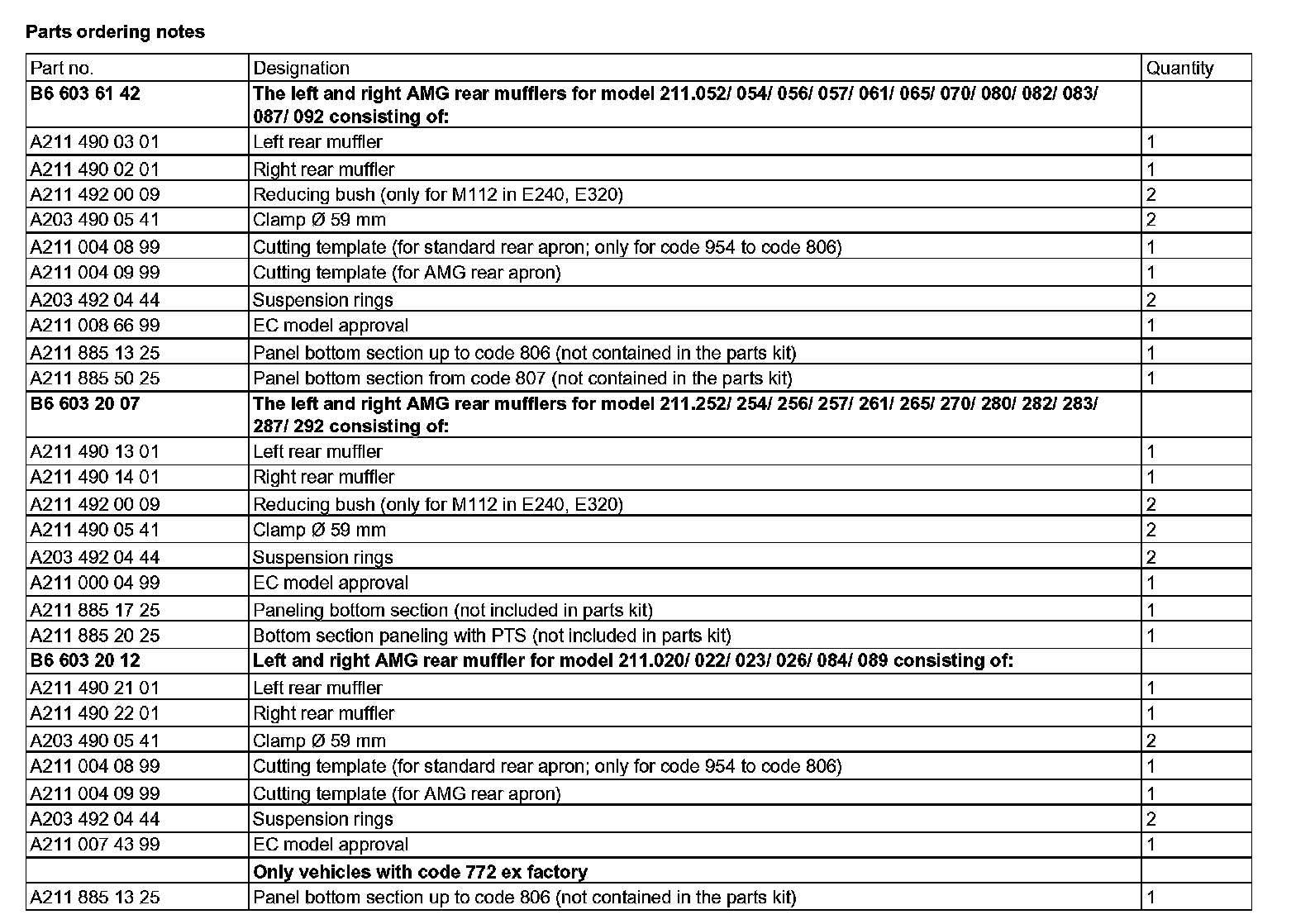 E 320 4MATIC Sedan (211.082) V6-3.2L (112.954)