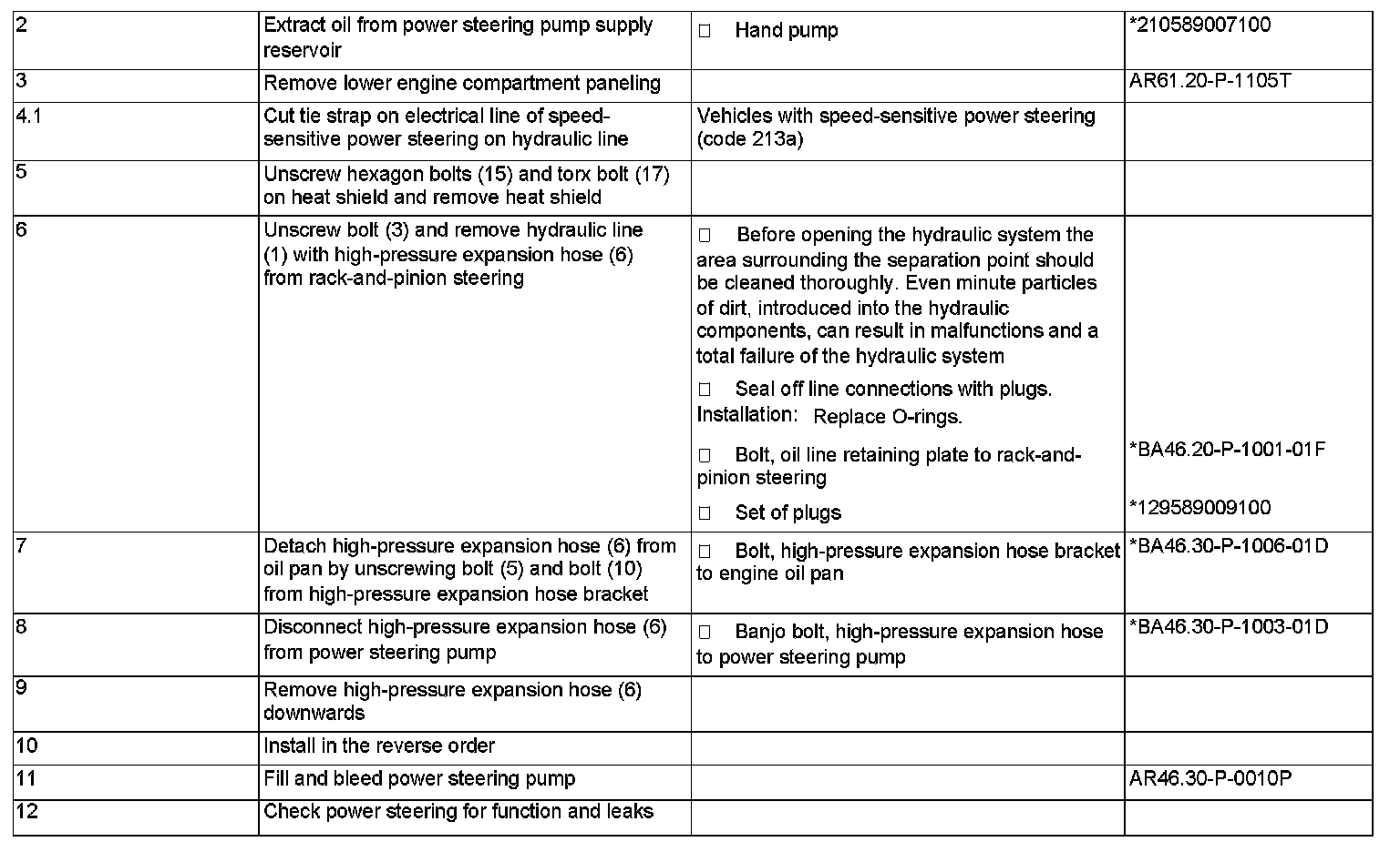 AR46.25-P-3015VB Removing and installing hydraulic line of power steering