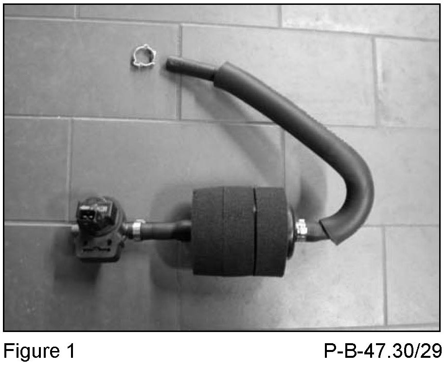 4. Install damper to purge valve by connecting the 8 mm rubber hose connector of the damper and secure with hose clamp (Figure 1).
