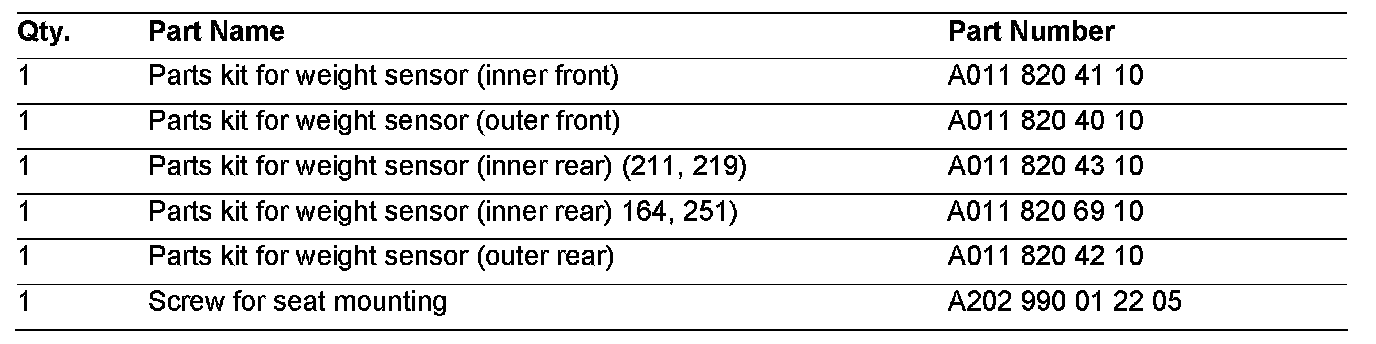 Replacement of Weight Sensing Seat Sensors