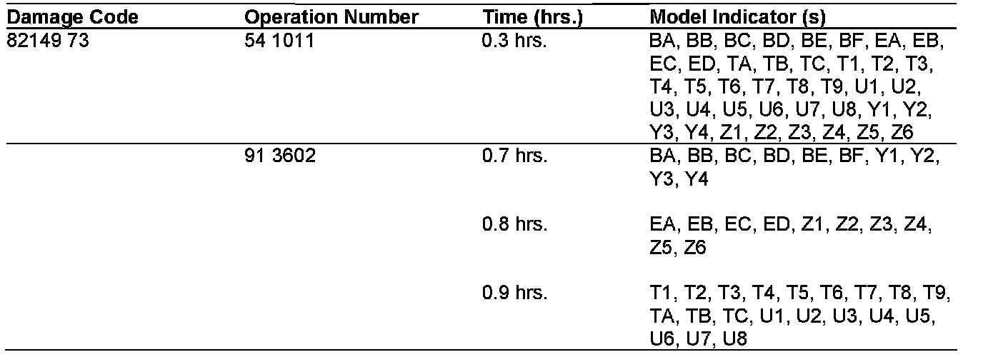 NOTE: The following allowable labor operations should be used when submitting a warranty claim for this repair. This information has been generated on October 2, 2008. Please refer to Netstar -> Star TekInfo -> Star Time for the most current labor time allowance.