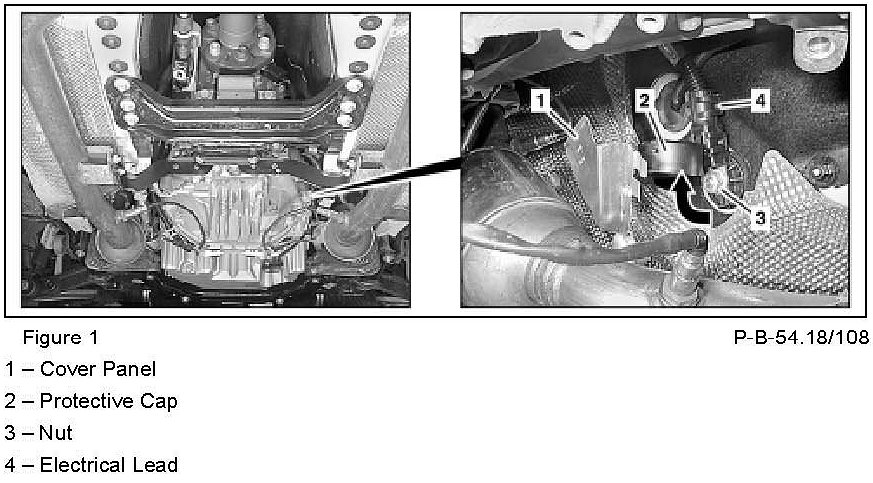 3) Disconnect starter cable harness on the vehicle under side from (F32) prefuse box (Figure 1, 3).