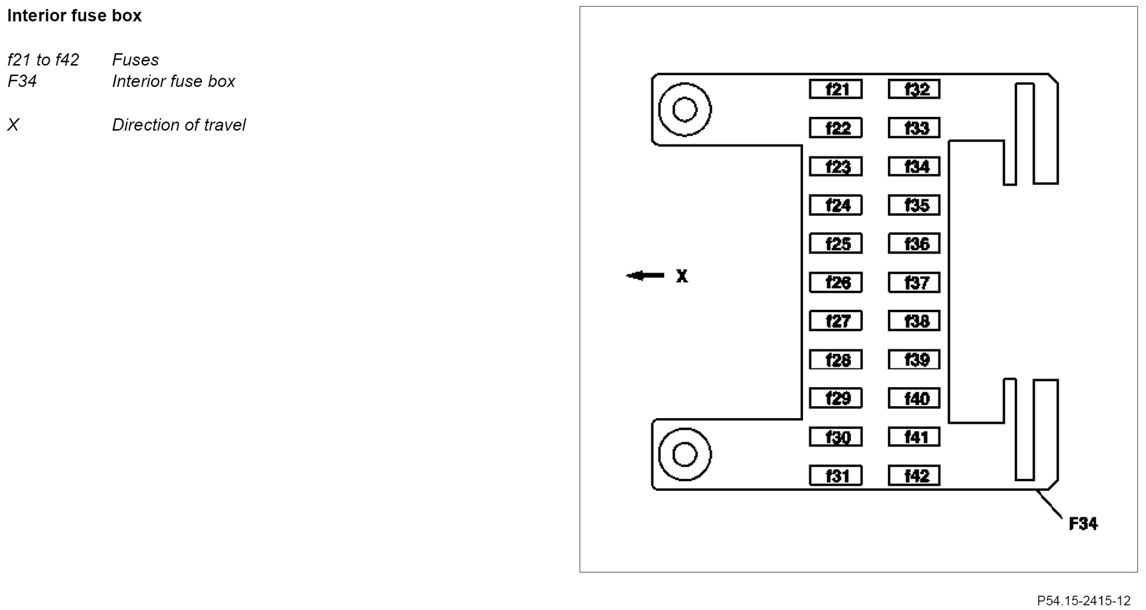 GF54.15-P-1256-04TB Fuse Assignment of Fuse Box In Interior Compartment on Driver's Side