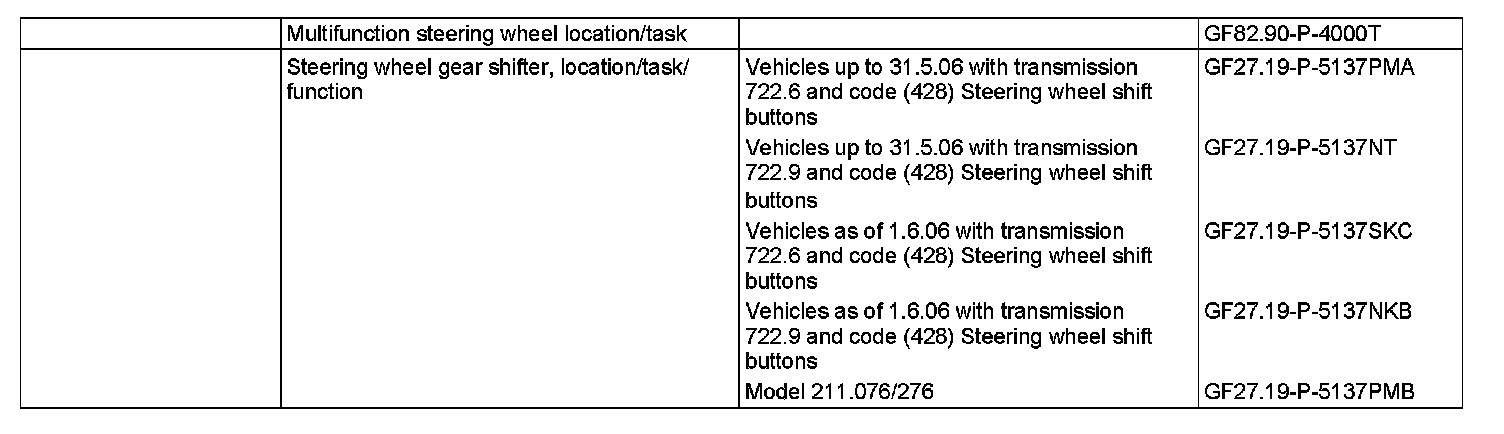 ^ Steering wheel gear shifter MINUS and steering wheel gear shifter PLUS (AMG vehicles and vehicles as of 1.6.06 with code (428) Steering wheel shift buttons)